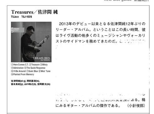 #ジャズ批評 の最新号(2026年1月号)に、佐津間純「TREASURES」のディスクレビューが掲載されています。