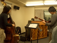 11月29日にRutman's Violin Shopでコンサートをやりました! その時の写真が友人から送られてきたのでアップしてみました。 このバンドは『メガネーズ』というバンドで、トランペット、アルト、テナーサックス、ギター、べーす、ドラムという編成。 6人中なんと5人が眼鏡をしているということで、メガネーズっていうバンド名になりました。アメリカじゃ通じないんですけどね、、、。 まぁ名前だけ聞くとふざけてると思うかもしれませんが、 みんな素晴らしいプレーヤーだし、気合いたっぷり大マジメなバンドです! ライブもすごく楽しかった! 僕のトーク(曲紹介とか)はボロボロだったけど、、(笑)。