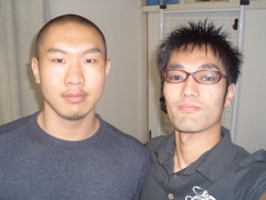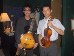 今日は、ヴァイオリンの洋介君と初デュエットライブでした。 たくさんお客さんが来てくれて、楽しく演奏できました。 このデュオは、これからもいろいろなところでやって行くので みなさん是非,聴きに来て下さい♪ 初めて大森のライブ食堂KITAROでやったのですが、マスターもママさんもとても暖かい人たちでした、あとご飯がおいしい!バイキングスタイルなのでたくさん食べられます!来月もやらせて頂くことになりました! 写真は左から僕と洋介君。 2006.8.4[Fri]