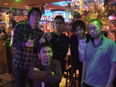 よくライブ会場とかで音響を担当してくれる人やそれら音響の機材(マイク、ミキサーやスピーカーなど)のことを『P.A』.っていうの知ってます??音楽をやっている人は聞き慣れた用語ですね。んで、普段『P.A.』って何気なく口にすることがあると思うんですが、ふと、P.A.ってなんの略だろ??って思ったんです。んで、アメリカ人の知り合いに聞いたところ、どうやら『Public Address』の略だそうですね。辞書を引いたら「Public=公(おおやけ)」、「Address=提供する、話しかける」『Public Address System』で拡声装置という意味だそうですよ。 へ〜♪って知らなかったのは僕だけでしょうか、、、?? ☆今宵は鎌倉ダフネにフルートのMIYAさんと師匠道下さんとベース小川直さんからなるバンド『ストーリーテーラーズ』のLIVEに遊びに行ってきました!とっても素敵な演奏でした。ディープでした!演奏後みんなで写真を撮りました♪(MIYAさんのブログからパクった写真です。うひひ!) 『道下和彦&みちしたチルドレン♪』