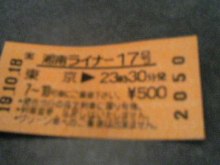 今宵は赤坂カーサクラシカ にて『Jun&Nana』 でした♪ とても雰囲気の良いお店でとってもリラックスして演奏できました! 今宵はガットギター1本勝負!アンプがいらないので荷物が軽くてラクチンです♪今日は電車で行きました。なので、演奏終了後ワインなんぞをたしなんでみました!うひひ。おいしかった♪ 帰りは湘南ベルマーレ応援隊長Mさんのおかげで東京から湘南ライナー(特急電車)に乗りました!こう見えて僕は結構電車好き♪湘南ライナーに乗るのは初めてでとってもワクワクしてました!だって停車駅が東京→品川→大船→藤沢!!あっという間に着いてしまいました!横浜を通過するなんてずいぶん大胆な電車だと思いませんか!?そんなこんなで無事帰宅♪ 写真は湘南ライナーの特急券♪