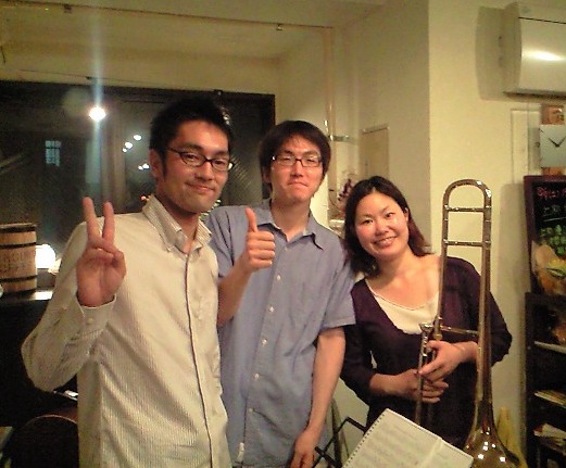 久々のライブでした! 確か4月以来〜? いやぁ〜久々のこのトリオはとても楽しかったです♪ 前回よりも3人での音楽のイメージが自分の中でハッキリして来て、思い切って演奏できた感じでした! ひさびさにやって新たなアイディアも浮かんだし♪ これからはもっともっとコンスタントにやっていきたいもんですが、果たしてどうなることやら…♪