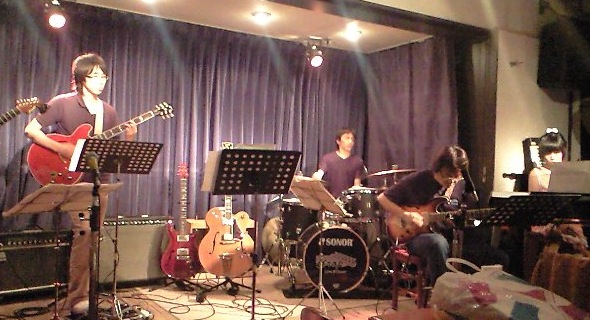 今宵は久しぶりに成瀬クロップにて昨日レコーディングしたヨコハマベイギターズのライブでした♪♪今宵はレギュラーメンバーでギターの阿久津君の代わりにギタリスト佐藤洋平君が参加してくれました♪ 2009.7.24[Fri]