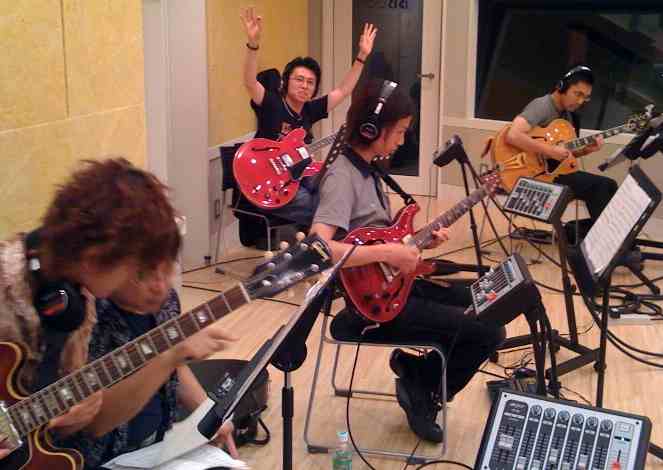 ベイギターズのレコーディングでした♪♪ 今日は、寺屋ナオさんや本吉タイガさんも参加して熱いギターバトルを収録しました!道下和彦氏の呼びかけで始まったベイギターズですが、こうやって皆でレコーディングできることがとってもうれしいです!皆で和気あいあいと楽しいレコーディングでした♪