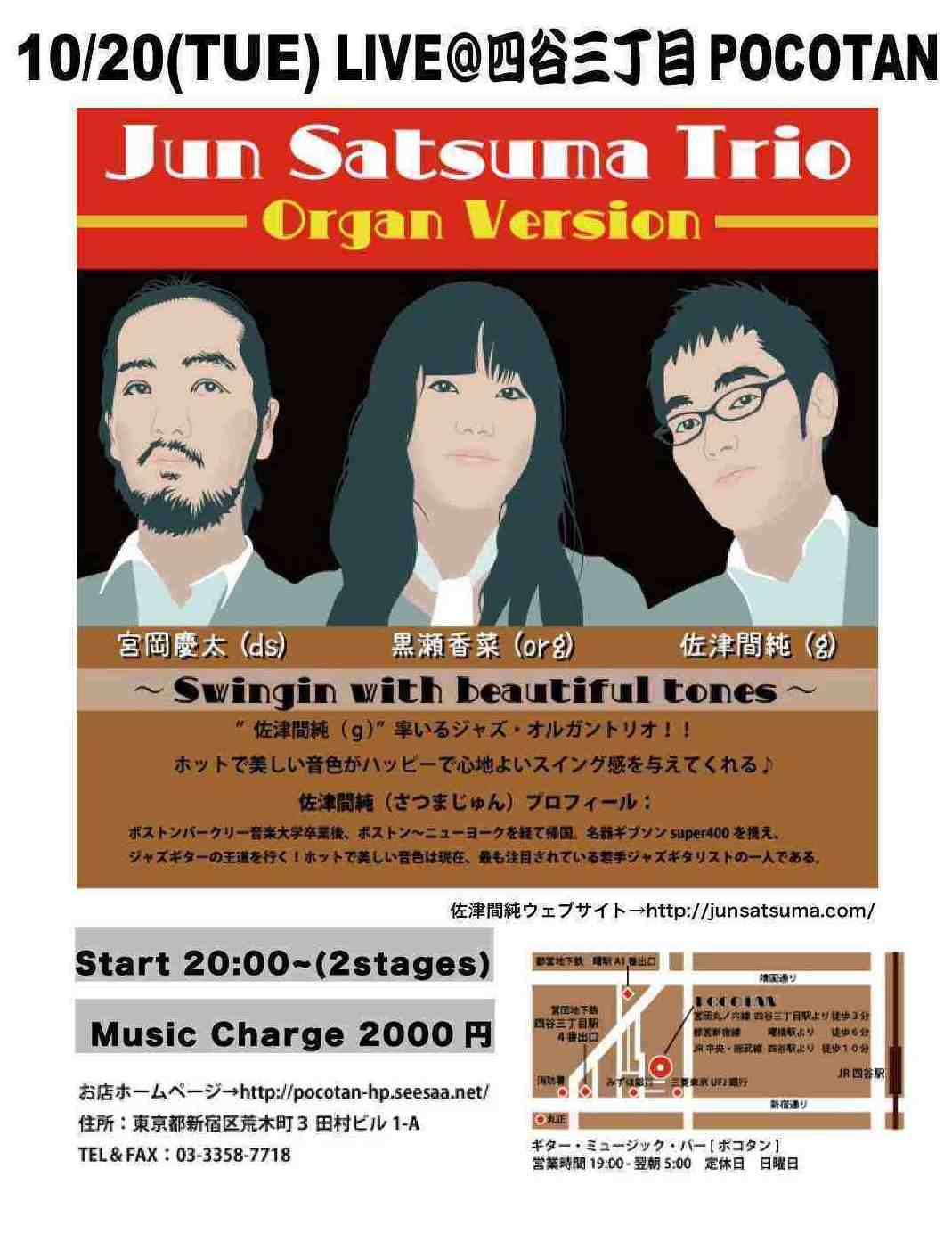 今宵は、成瀬クロップでベイギターズのライブでした♪♪楽しいライブになりました!ご来場のお客様どうもありがとうございました!常々思いますが、こんなバンド他では絶対聴けません!!ギター五人もいるのにちゃんとひとつのアンサンブルになる♪スタイルもまったく違うギタリストがそれぞれの個性を出しまくっているにもかかわらず、皆で絶妙なアンサンブルを作っています!僕のようなストレートなジャズギターを弾く人もいるかと思えば、いきなりディストーションで弾きまくる人もいる!音楽って面白いなぁ〜、自由だなぁーって感じさせてくれるバンドです♪ホントに幸せな時間です♪ ベイギターズの新しいHP出来ました!Check it out!! http://www.asahi-net.or.jp/~ak5k-mcst/Bayguitars.htm さて、ベイギターズもがんばっているんですが、 佐津間バンドもがんばらねばね!! 『佐津間純TRIO(ORGAN VER.)』のライブ決まりました! 10月20日に四谷三丁目ポコタンです♪♪ オルガントリオの音源はこちら↓ http://www.myspace.com/junsatsuma