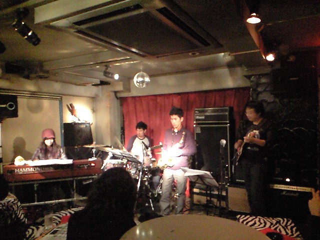 今宵は青山の某洋服屋のパーティーで中村誠一さんのグループで演奏♪♪楽しい演奏であっという間に時間が過ぎてしまいました♪ 写真は左から僕、出口優日(vo)、黒瀬香菜(org)、川口弥夏さん(ds)、誠一さん(sax)!!
