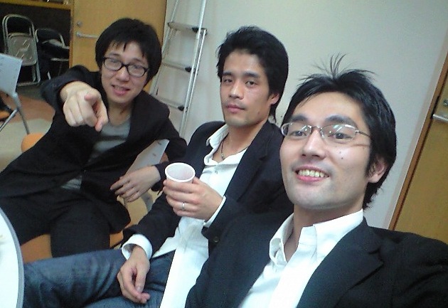 今日は若手の音楽仲間を中心に昼間に藤沢BECKに集まってセッションして、夜はすき焼きパーティーをしました♪ 写真はBECKにて、高校の大先輩、古屋先輩(ds)とバークリー時代の盟友:谷殿明君(tp)!! 2009.11.8[Sun]