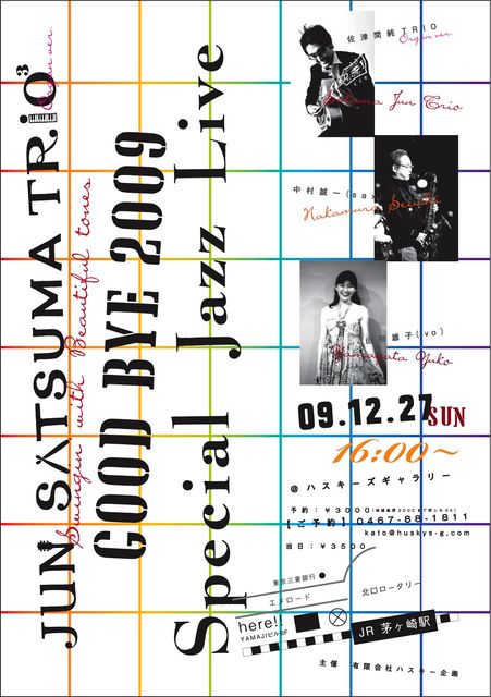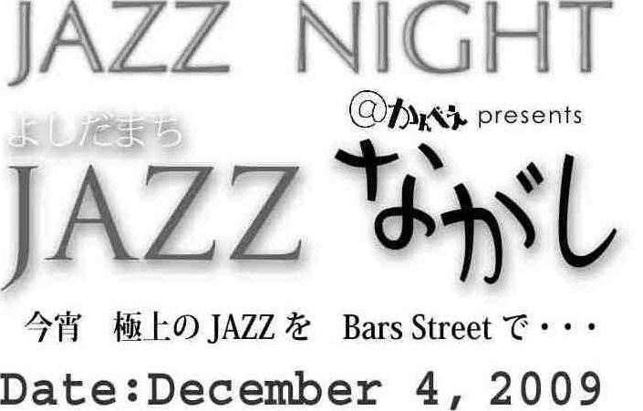 1年の中でクリスマス、年末とみながセカセカしうきうきしているこの時期が僕は一番好きです!!今月も楽しみな演奏盛り沢山です!!寒さを吹っ飛ばす暖かいサウンドをぜひ聴きにきてください!! ☆Pick up!!☆ ☆12月5日(土)@江古田そるとぴーなつ☆ 佐津間純(g),黒瀬香菜(org)&宮岡慶太(ds) 20:30〜(2stages)/チャージ1500円(music charge1000+table charge500) (ご予約、お問い合わせ03-3993-3400) お店HP→http://homepage3.nifty.com/salt-peanuts/index.html ☆江古田そるぴに出演♪お店の雰囲気、音響どれをとってもピカイチのお店です!ぜひ、たくさんの方に聴いていただきたい! ☆12月6日(日)@藤沢BECK☆ 佐津間純(g),黒瀬香菜(org)&永山洋輔(ds) 14:00〜(2stages)/チャージ1000円(music charge1000+table charge500) ☆地元藤沢でお昼のライブ♪今回はドラムが永山洋輔(ds)!! そしてそして… ☆12月27日(日)@茅ヶ崎ハスキーズギャラリー☆ 『さよなら2009 スペシャルジャズライブ♪』 佐津間純(g),黒瀬香菜(org)&宮岡慶太(ds) +中村誠一(ts),山形雄子(vo) 演奏開始:16:00〜/チャージ:予約3000円、当日3500円 ☆佐津間純トリオにスペシャルゲストを招いてのスペシャルライブ!! お聴き逃しなく!!http://www.huskys-g.com/ 2009.12.1[Tue]