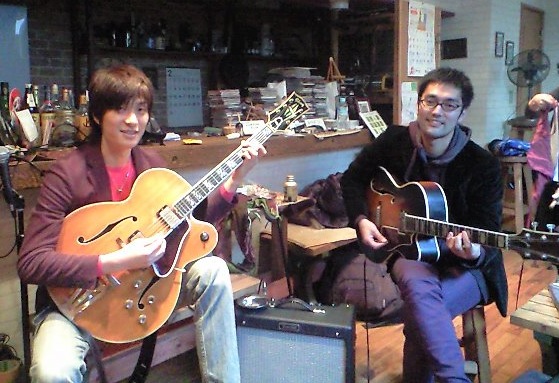 明日2月10日は名手「岩見淳三」氏とデュオでライブです♪♪ 岩見さんと出会ったのは僕が高校生の頃、岩見さんのライブを聴きにいきました。それから9年くらい?その大先輩と共演する機会を与えられてとても楽しみです♪ぜひ、お時間のある方は足を運んでいただけたら幸いです!! 岩見淳三web site→http://junzouak.hp.infoseek.co.jp/ 佐津間純web site→http://junsatsuma.com/ 〜詳細〜 ☆2月10日(水)@四谷三丁目POCOTAN 『岩見淳三(g)&佐津間純(g)』 #&bでおなじみの日本を代表するジャズギターの名手『岩見淳三さん』と共演します♪極上のジャズギターのサウンドをご堪能ください♪♪ 演奏開始20:00~(2set)/チャージ2500円 ポコタンHP→http://pocotan-hp.seesaa.net/ そんな訳で、今日は岩見さんと明日のためのリハーサル♪♪ いろいろな曲を仕込みまして明日が楽しみです♪ 夜はおなじみ四谷三丁目のVOICEにて演奏♪今夜は若林美佐さんと宮岡慶太さんとトリオで演奏でした♪ギタートリオはいつも学ぶことが多いです♪ 2010.2.9[Tue]