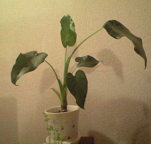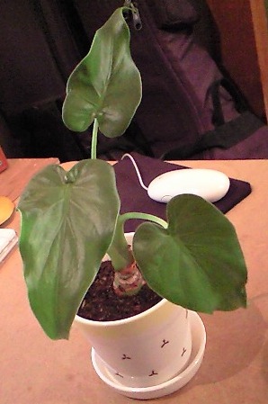 1月にうちにやって来た観葉植物クワズイモ、成長著しく一回り大きな鉢に植え替えしてやりました♪♪ますます、元気に育ってくれるといいなぁ〜。 2010.4.2[Fri]