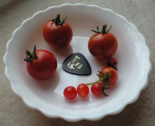 今朝収穫しました!!今回は大きなものから小さなものまでいろいろあります♪♪大きさを分かりやすくする為にピックを置いてみましたがいかがでしょうか??早速食べてみましたが、ジューシーでとてもおいしかったです! さて昨夜は小田原スパッツでした!ベースの小林新作さんのグループで日本を代表するアルトサックスの澤田一範さんと共演する事ができました!!とても刺激になりました! 2010.6.27[Sun]