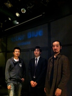 昨日のモーションブルーでの写真。佐津間トリオの頼りになるメンバーです♪ 左から高道さん、僕、宮岡さん♪ さて、明日からトランぺッター中西暁子のグループで山形県に2日間ツアーです♪山形は初めて行きます! 〜詳細〜 ☆11月13日@山形 酒田市 Lush Life 中西暁子(tp,flh)Quartet 佐津間純(g) 本川悠平(b) 二本松義史(ds) ☆11月14日@山形市 Octet 中西暁子(tp, flh)Quintet 大浦俊一(p) 佐津間純(g) 本川悠平(b) 二本松義史(ds) 2010.11.12[Fri]