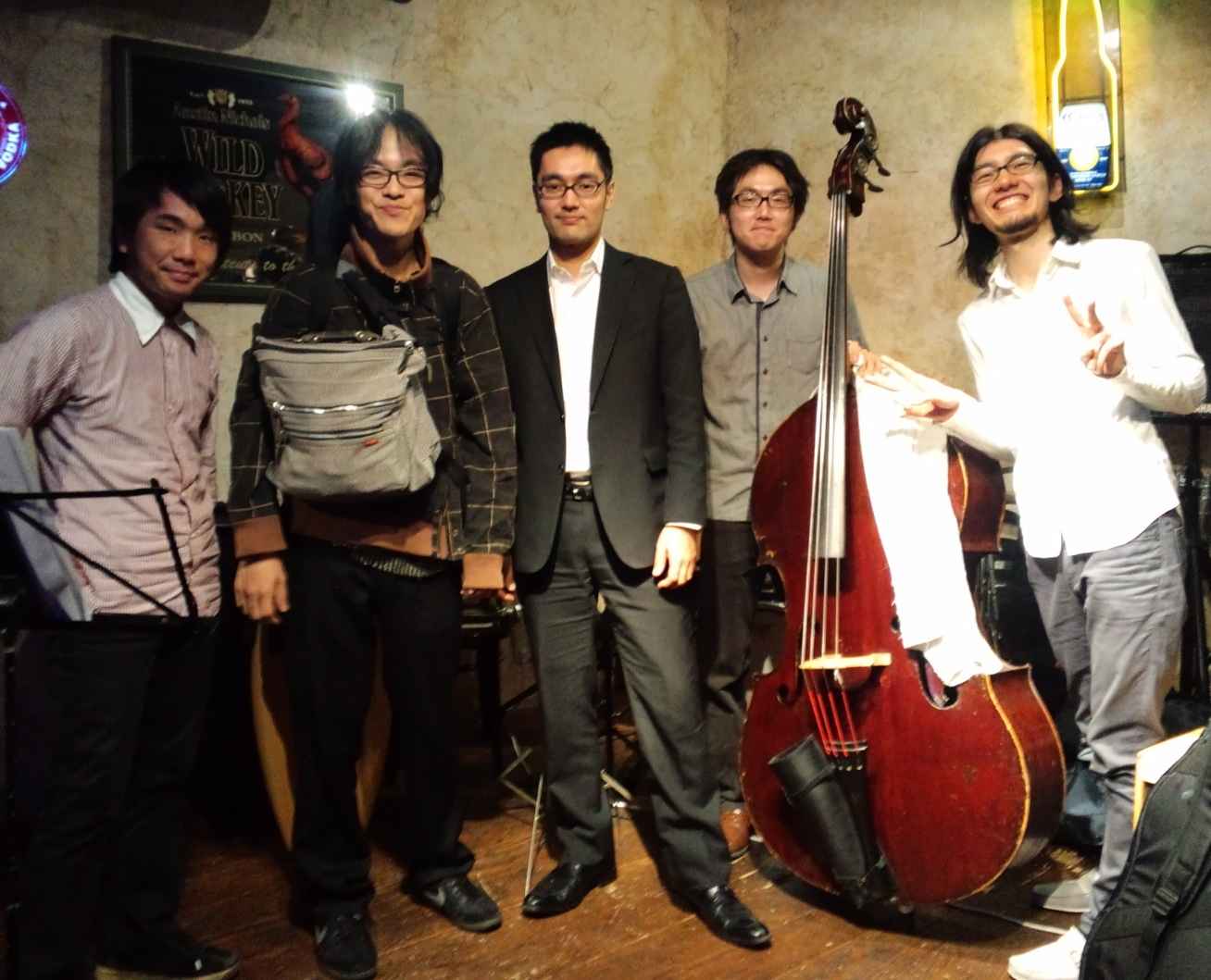 今宵は藤沢BECK!素晴らしいメンバーと共演でした。 澤田一範(as)・佐津間純(gt)・紅野智彦(pf)・小林航太朗(b)・岡部朋幸(ds) しかも、今日は小林航太朗くんのバースデイ!出会った頃は10代だった彼ももう27!出会ったときから素晴らしかったけど、これから益々素晴らしいベーシストになることでしょう♪♪お誕生日おめでとう! 2011.11.16[Wed]
