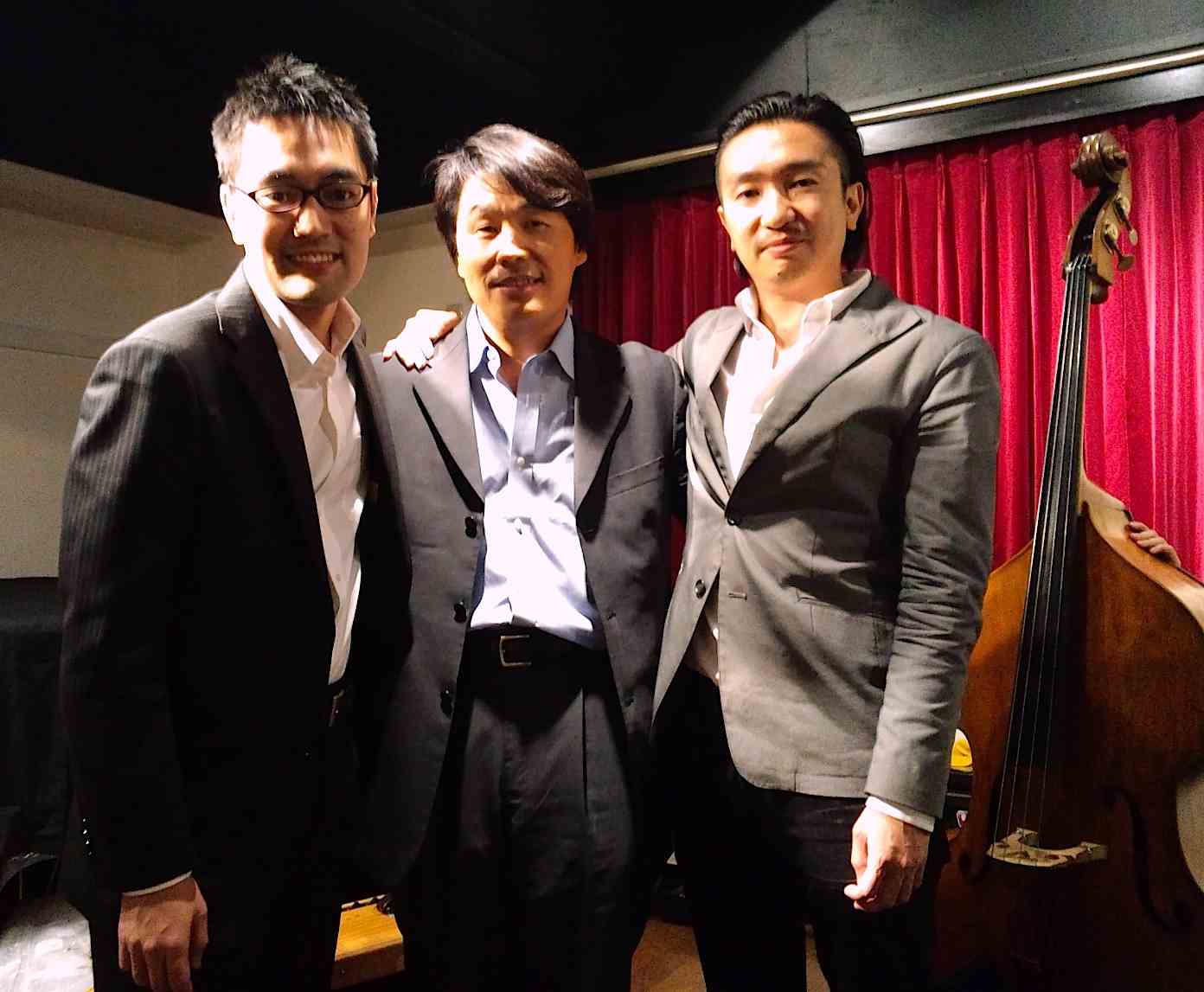今日は昼間から湘南のあちこちでジャズのライブが展開されていた模様♪ 僕は茅ヶ崎ハイハットにて小林新作さん(b)の企画で村田浩さん(tp),元岡一英さん(p)ゲストボーカルには沢田千佳さん(vo)。そしてハイハットのマスター上地さん(ds)というメンバーで夕方からライブ♪ハイハットは茅ヶ崎駅前の路地をちょっと入ったところに佇むこじんまりとした素敵なお店です♪日本のジャズを牽引してきた素晴らしいミュージシャンたちと共演させていただいてとても嬉しい一日でした♪ジャズって楽しいなぁ♪ご来場いただき暖かい声援を送って盛り上げてくださった皆様ありがとうございました! 今日は同じ茅ヶ崎にあるハスキーズギャラリーでは僕の師匠岡安芳明さんがやっている「東京銘曲堂」も来ていたし、おなじみ藤沢にあるBECKでは「小林航太朗カルテット」がライブをやっていたし♪湘南はジャズ日和でした♪ 2011.11.27[Sun]