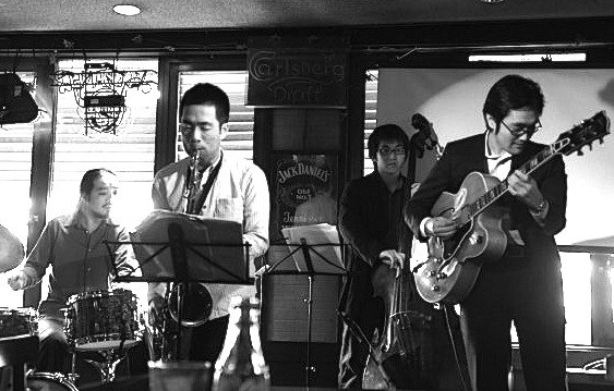 トランぺッター村田浩さんのグループで小田原スパッツに出演しました♪村田浩(tp)、岡田義満(ts)、宮岡慶太(ds)、小林新作(b)、 佐津間純(g)なんとも強力なメンバーです♪ 村田浩さんは日本を代表するジャズトランぺッターで何十年も村田浩ザバップバンドというレギュラーグループを率いて全国を飛び回っていらっしゃる方です。バップバンドというくらいですから、その演奏スタイルは僕の好みにどんぴしゃり!村田さんと出会ったのは5,6年くらい前、僕がアメリカから帰ってきてわりとすぐだったと思います。初めて会って演奏聴いたときドナルドバードかっ!!って思いました♪それから、いろいろなイベントやライブで年に1,2度一緒に演奏させてもらう機会があります♪毎回楽しくて感激が盛り沢山♪演奏はもちろんですが、ステージでの立ち居振る舞いなど。休憩中のジャズ談義もとても楽し♪ そんなわけで、今宵も楽しく夜は更けていくのでありました! ジャズってたのしい! 2012.4.7[Sat]