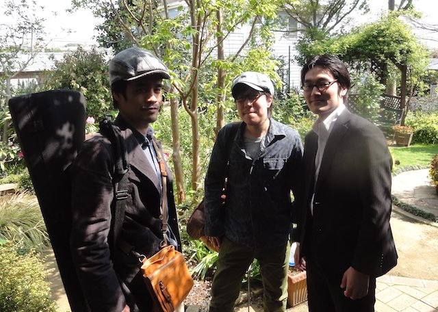 来月5月は平塚、小田原、茅ヶ崎、藤沢、湘南のいろいろな場所でジャズの演奏が聴くことが出来ますよ。そう、湘南ジャズフェスティバルの月なのです!! 僕もいくつかのイベントに出演させていただきます♪ ☆5/5@小田原城址公園野外ステージ 観覧無料/時間:12:00-17:00 ☆5/13@平塚市民センターホール 観覧無料/開演13時〜 詳細→http://www.jws-net.com/sjf2012.gif ☆5/19@茅ヶ崎ハスキーズギャラリー 『湘南ジャズフェスティバルin 茅ヶ崎(前夜祭)』 〜Live & Jam Session〜 出演:佐津間純(gt)&小林航太朗(b) 開演:18時〜 詳細→http://www.huskys-g.com/ そんなわけで、今日は『Remembers』として出演する13日のコンサートに向けてのリハーサルを某所で行いました。このバンドは、フロントに3管(トランペット、アルトサックス、トロンボーン)そして、ギター、ヴィブラフォン、そしてリズムセクション(ドラム、ベース、ピアノ)という豪華編成♪地元のアマチュアのボーカリストの方々も参加するという企画で、このバンドでその伴奏もすることになっています。 今日のリハはその伴奏とボーカルの音合わせ。バークリー時代からの盟友でこのバンドの影のバンマス谷殿明良くんが素晴らしいアレンジを書いてきてくれました。豪華な編成をバックに歌うということでボーカリストの方もとても感激していらっしゃいました! 楽しくなりそうです!! 写真はリハ会場の庭にて左からトロンボーンの三寺さん、トランペット谷殿くん、ギターの佐津間。