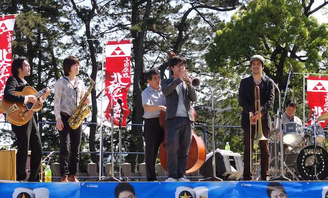 小林新作(b)&リメンバーズというグループで小田原北条まつりジャズフェスタに出演しました♪天気は快晴!紫外線をもろに浴びて随分顔が焼けましたが、気心知れた仲間と楽しいひとときでした! 2012.5.5[Sat]
