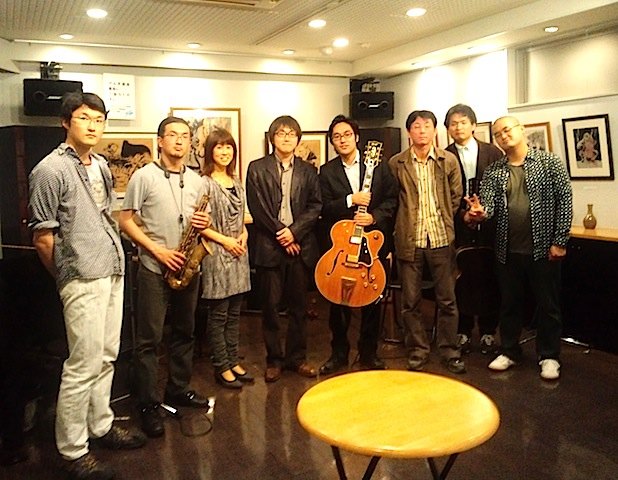 今夜は茅ヶ崎ハスキーズギャラリーにてライブ&ジャムセッション♪ 沢山の方にご参加いただきました♪地元でこういう交流の機会があるととても嬉しいことです!また機会を作ってやりたい企画であります♪ご来場の皆様ありがとうございました♪ セッション後残ってくださっていた方々と一緒に記念撮影♪ 2012.5.19[Sat]