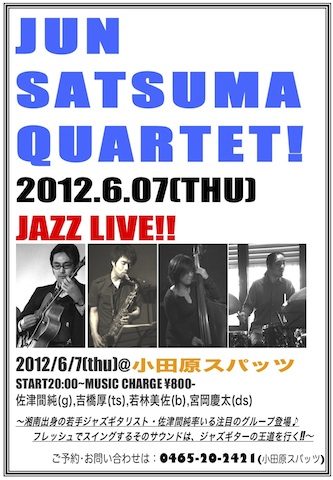 6月7日は小田原スパッツにて『佐津間純カルテット』!! 2012.5.30[Wed]