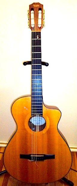 明日は普段あまり登場しないテイラーのエレガットを弾く機会があるので猛練習…。このギターはわりとネックも薄くて本物のクラシックギターを弾くより弾きやすいのです♪とはいえ、やっぱり普段弾いているフルアコとは別物ですね。 2013.2.22[Fri]