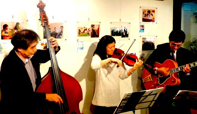 藤沢市辻堂にある素敵なカフェ『風音』にて演奏でした♪♪ バイオリン影山優子さんとギター佐津間とベース小林新作さんというこのユニット、今回初ライブでした♪ユニット名は「Swing String Club」と命名♪ 素敵なお店の雰囲気と暖かいお客さんの声援に囲まれて和気あいあいと楽しく演奏することができました♪ありがとうございました♪ 2013.2.24[Sun]
