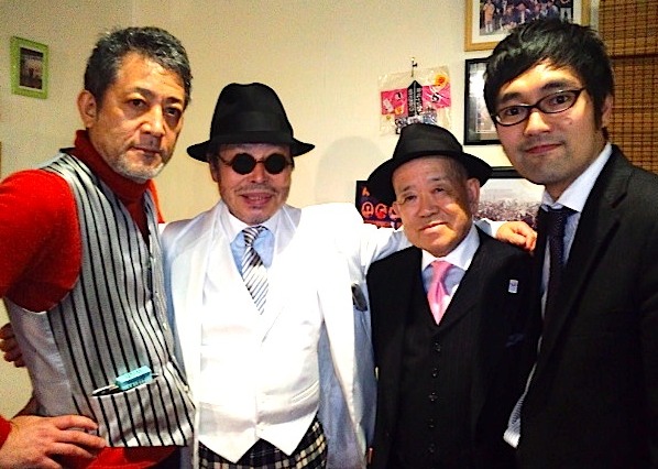 昨日は茅ヶ崎にて水橋孝(ゴンさん)の70歳バースデイパーティーで演奏しました♪水橋氏を慕うファンの方々がたくさんご来場くださいました。写真は左から、ドラム佐々木豊さん、今日の主役水橋孝さん、この会をプロデュースしてくださった魚津さん、そして佐津間♪濃いメンバーです♪♪ 2013.3.4[Mon]