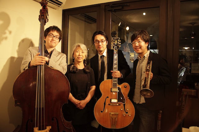 左から小林航太朗b、風音のママ佐藤さん、佐津間gt、谷殿明良tp