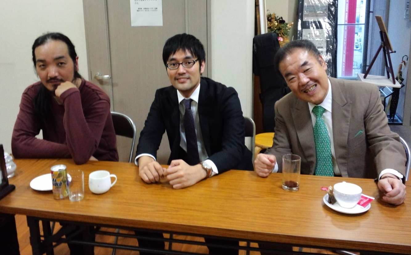 村田浩&The Bop Band+1@茅ヶ崎ハスキーズギャラリー♪たくさんのお客様にご来場いただき楽しいライブとなりました♪バップバンドはジャズのカッコいいところハッピーなところ全てが詰まっているバンドで僕の目標とするグループです。共演する機会を得たことをとても幸せに思います♪ありがとうございました♪ 終演後、ドラムの宮岡慶太さんとトランペット村田浩さんと記念撮影♪ 2013.5.19[Sun]